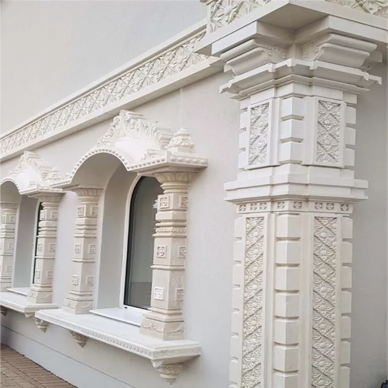 Our Glass Fiber Reinforced Concrete arches represent the perfect fusion of traditional architectural elements and cutting-edge material technology. Each Column is manufactured to exacting standards, offering: Exceptional Strength-to-Weight Ratio: At just 65 kg/m² (compared to 260+ kg/m² for traditional concrete), our GRC Column reduce structural load while maintaining superior strength. Design Versatility: Available in Roman, Gothic, Moorish, and contemporary styles with customizable dimensions to match your exact specifications. Weather and Fire Resistance: Engineered to withstand harsh environmental conditions with A1 non-combustible classification (BS EN 13501-1). Eco-Friendly Construction: Produces 75% less CO₂